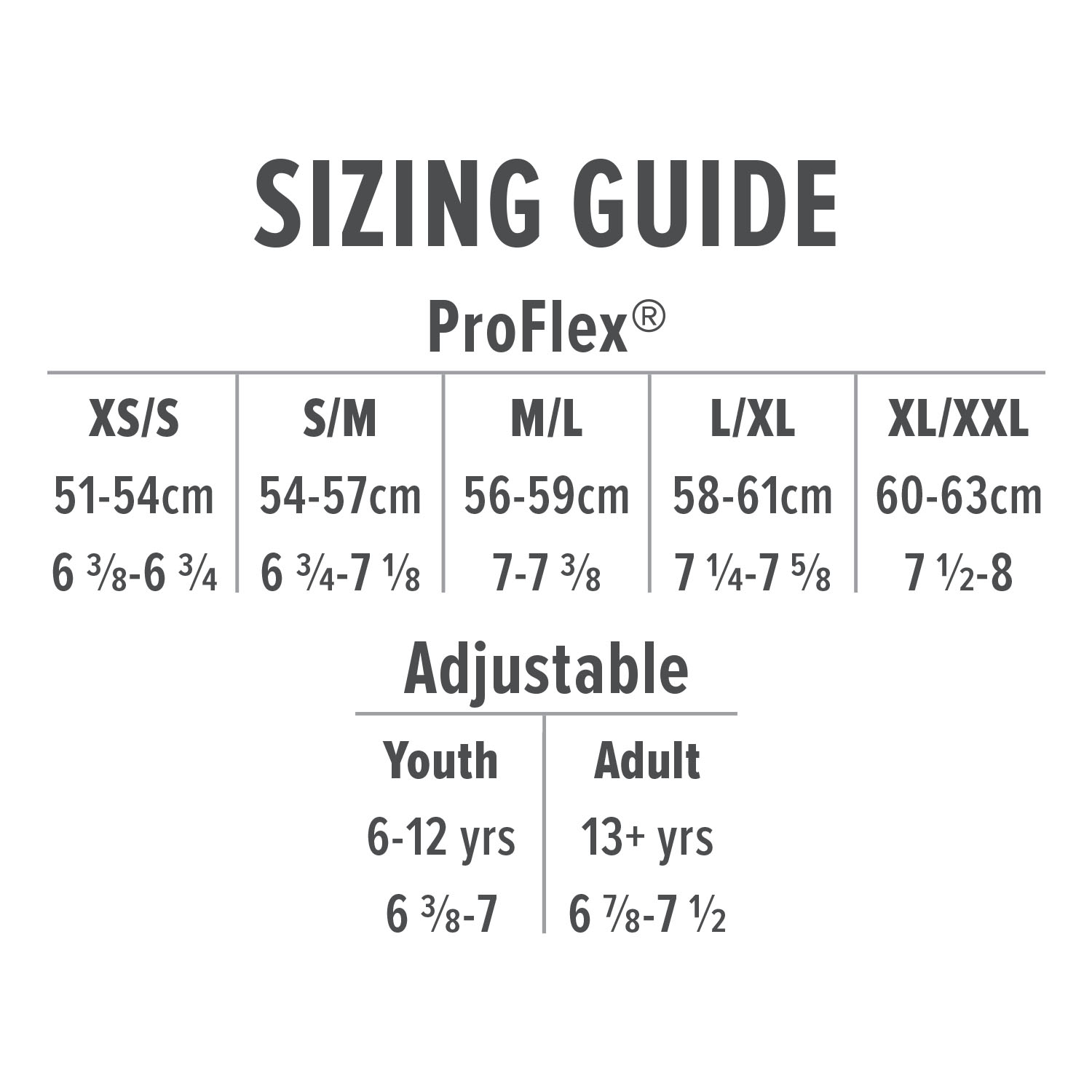 | Size | 51-54 | 54-57 | 56-59 | 58-61 | 60-63 |